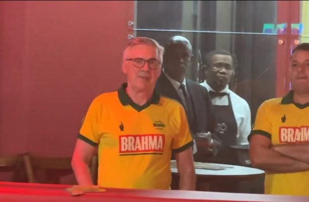 Logo na chegada, Ancelotti recebeu as boas-vindas de Bell Marques. O veterano do axé parou o trio para saudar o treinador e mandou um recado de responsabilidade sobre o futuro da equipe nacional.