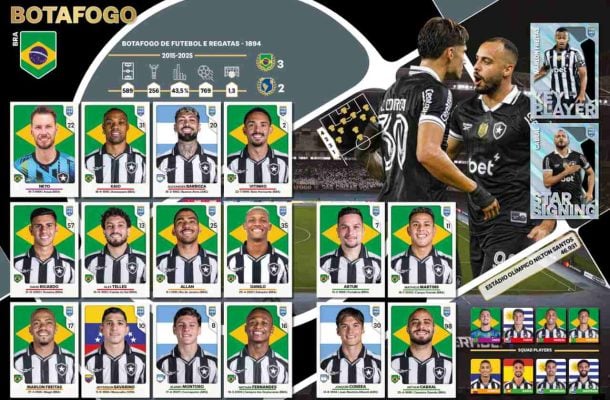 Líder no setor de colecionáveis e publicações, a Panini lançou a edição 2026 do álbum de figurinhas Fifa 365. A publicação contempla as principais equipes e estrelas do futebol global. Campeão da Libertadores e do Brasileirão em 2024, o Botafogo figura como o representante da América do Sul. O Mais Tradicional, aliás, é o único clube brasileiro desta edição.
