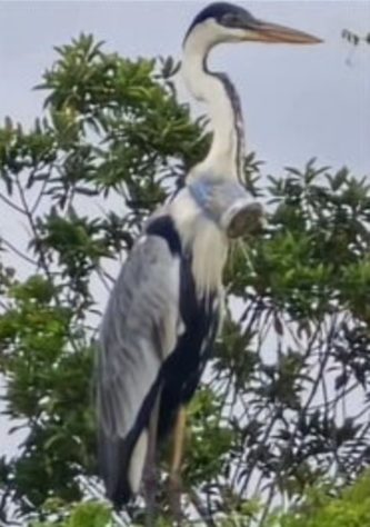 Desespero: Copo fica entalado em pescoço de garça e biólogos procuram pela ave para tentar salvá-la
