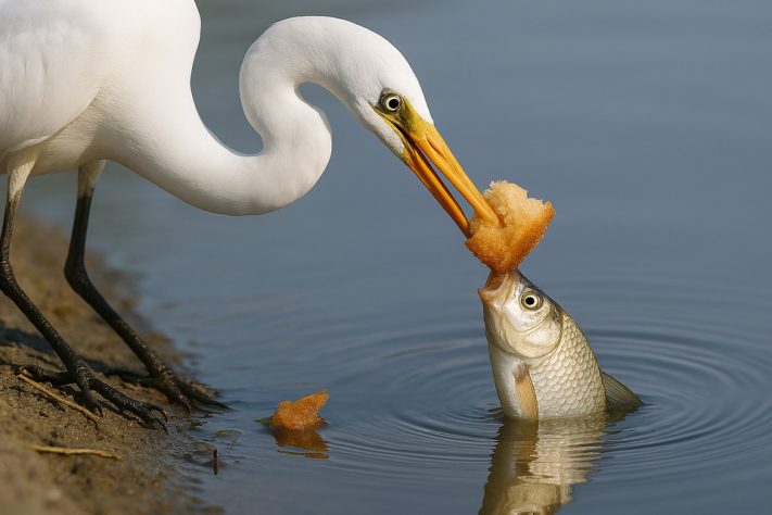 Pássaro usa pão como isca para pescar e surpreende a internet