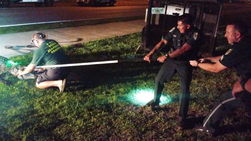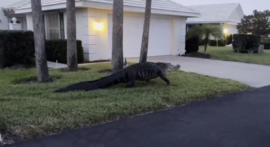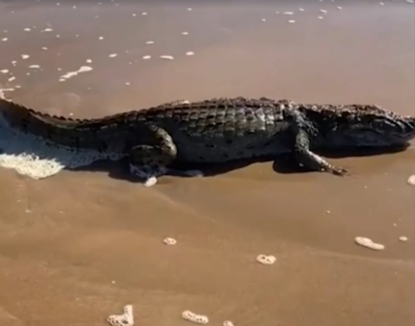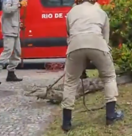Rolê assustador! Jacaré toma conta de pista de caminhada em Parque das Águas