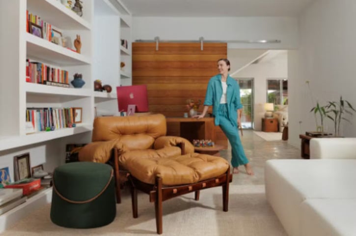 A reforma preservou o acolhimento da casa, com objetos afetivos e móveis antigos mesclados a peças novas. O quadro Sereia, de Alfredo Volpi, foi o ponto de partida para o projeto. Cada escolha — das texturas aos móveis — nasceu das lembranças e da essência pessoal da atriz.